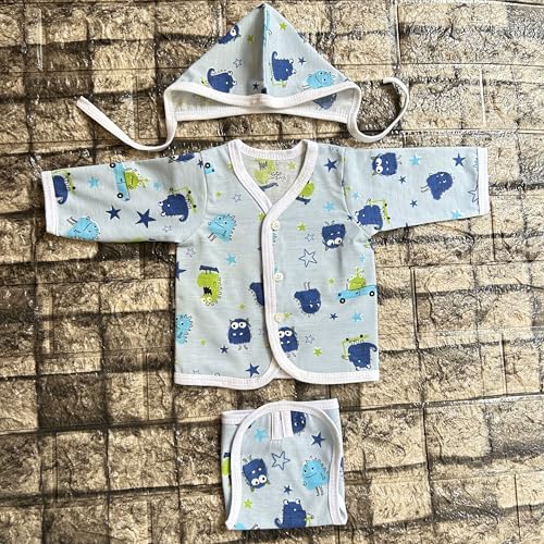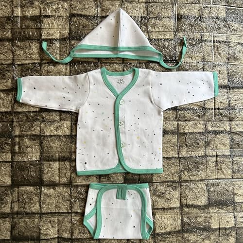 ♥ Benefits: The front-open shirt is easy to use and can be opened without harming your little one’s skin. The tying cap and nappy are comfortable and easy to wear. The hosiery cotton fabric absorbs moisture, helping to keep the baby dry for longer periods by reducing moisture buildup.