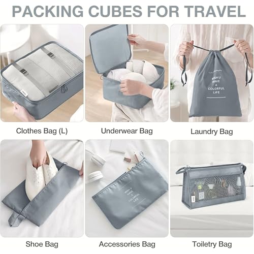 Ultimate Travel Organization: Our 10 PC Travel Packing Set includes 5 packing cubes with a see-through mesh top for clothes, 1 drawstring pocket, 1 underwear bag, 1 flat pocket, 1 shoe bag, and 2 wash bags for pen drives, earphones, and keys. Stay organized and stress-free on your trips.