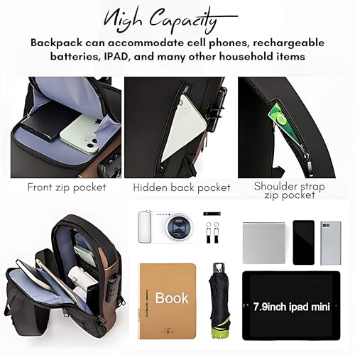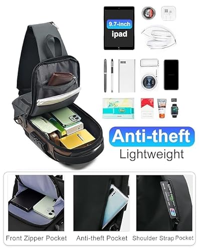 【USB Charging Sport Sling Anti-Theft Shoulder Bag】- This Men’s Women’s crossbody sling backpack comes with a usb charging port(power bank not included), for charging electronic devices via connecting your own power bank. You can charge your devices hands-free on the go at anywhere and anytime during walking, gym, sport, hiking, cycling, travel, outdoor activities and daily use.