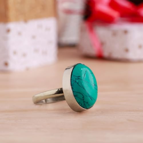 Package: Pack of 1 Turquoise Firoza Oval Ring | Grams: 10-15 Gm
