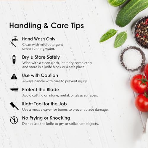 The ergonomically designed knife handles provides you with a superior comfort & non slip grip for better control and balance