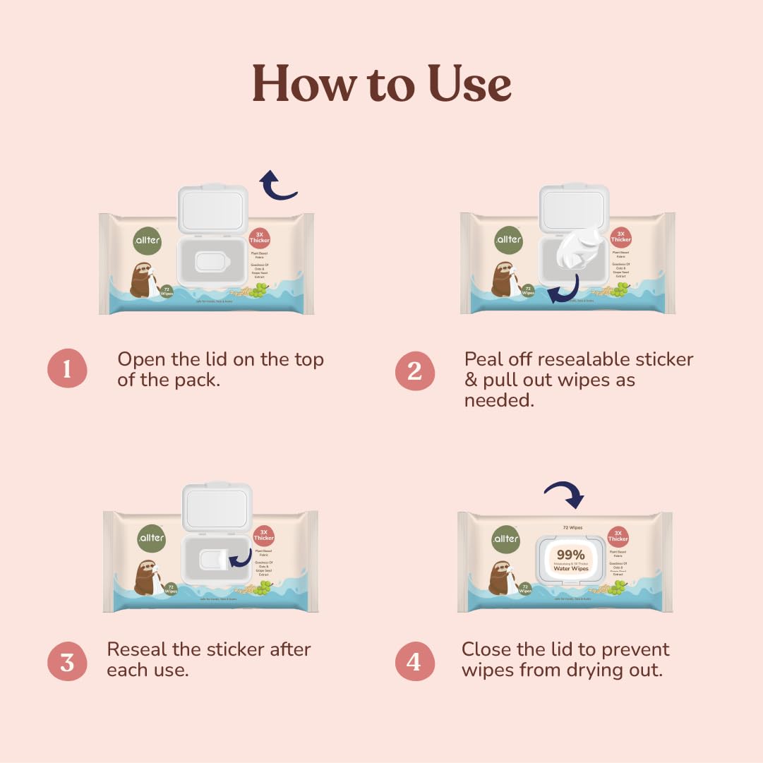 3X Thickness, 3X Durability- With 3X the thickness, Allter 99% Water Moisturizing Wipes make clean-ups a breeze. From snack messes to diaper changes, these wipes are built for durability, letting you handle messes effortlessly and focus on what matters.