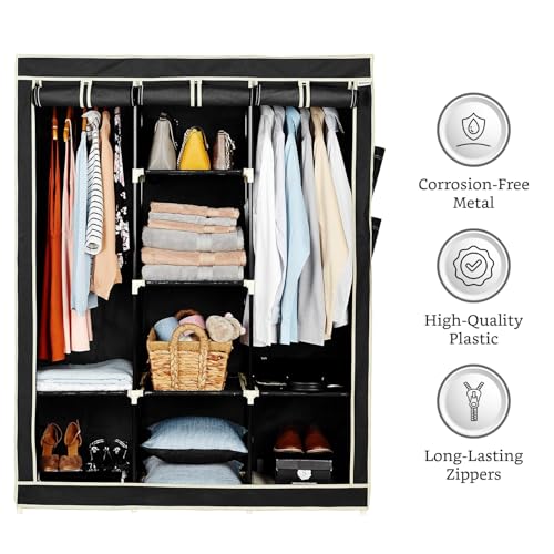 Black outer cover with premium-quality and long-lasting zippers;8 non-woven black shelves/racks made from 100 GSM fabric