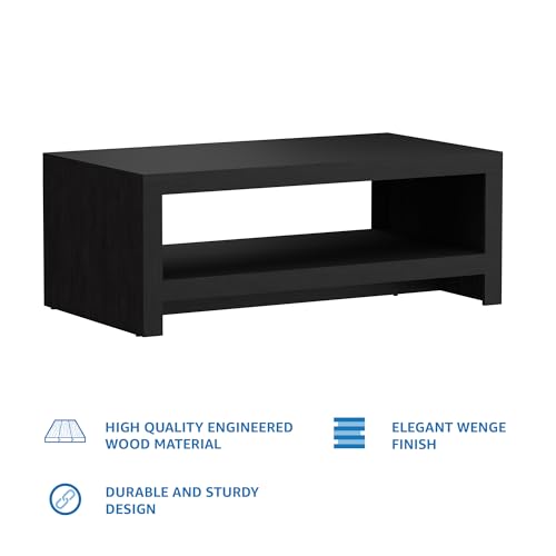 Wenge finish coffee table adds an elegant touch to living room decor; Spacious table top and shelf with loading capacity of 133kgs, for placing magazines, ornaments, etc.