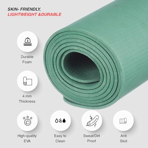 Amazon Brand - Symactive 4mm Anti-Skid Lightweight Sweat/Dirt Proof EVA Yoga Mat with Carrying Strap for Gym & Outdoor Workout for Men/Women (Army Green)
