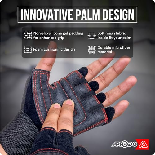 1 Pair Gym Gloves, Velcro Closer, Size Unisex-Adults, Wrist Wrap Support, Hook & Loop Closer,