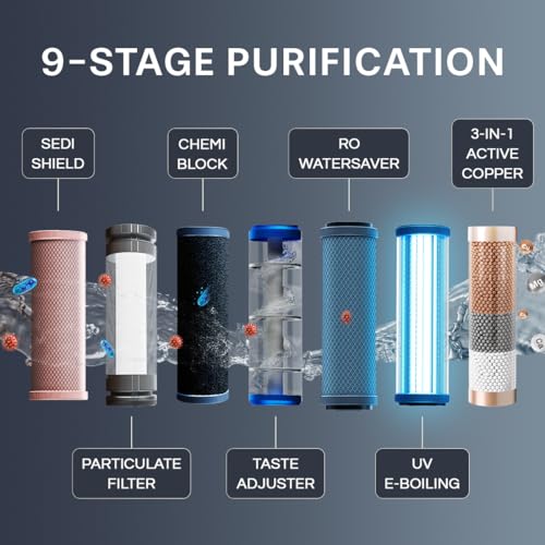 Product Technology- RO+UV with 8 stages of purification. RO Membrane removes contaminants like lead and mercury and eliminates disease-causing viruses and bacteria. UV e-boiling delivers water that is as safe and pure as water boiled for over 20 minutes.
