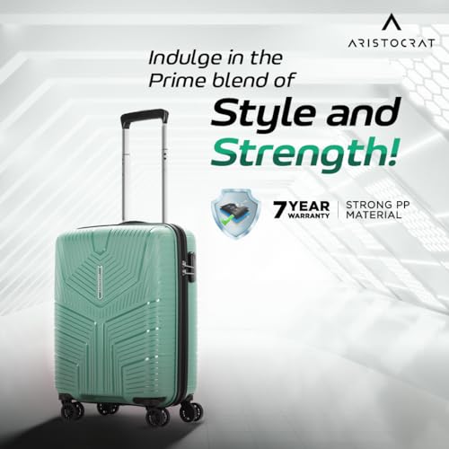 Aristocrat Polypropylene (Pp) Prime Cabin 55 Cm(Small) Check-in Check-in 8 Wheels Spinner Trolley Bags for Travel Hard Case Luggage, Lightweight Bag & Combination Lock with 7 Years Warranty (Green)