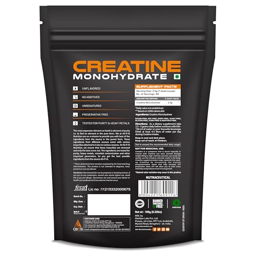 AS-IT-IS Nutrition Creatine Monohydrate 100gms | USA Labdoor Certified for Accuracy & Purity