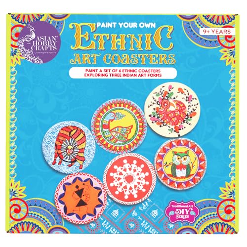 🎨 Explore Traditional Indian Folk Art – Includes Warli, Madhubani, and Gond inspired pre-marked coasters, introducing kids and adults to the beauty of ethnic Indian art in a fun, creative way. (6 Pre-Marked Coasters, Coaster Stand, 12 Pcs Paint, and Brush)