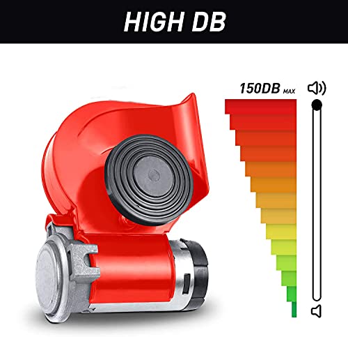 Automaze Air Horn 12V 150DB Super Loud Train Horn Kit,Train Horn for Truck with Air Compressor, Air Horn Complete Kits for Trucks, Cars and Bikes (Compact Red)