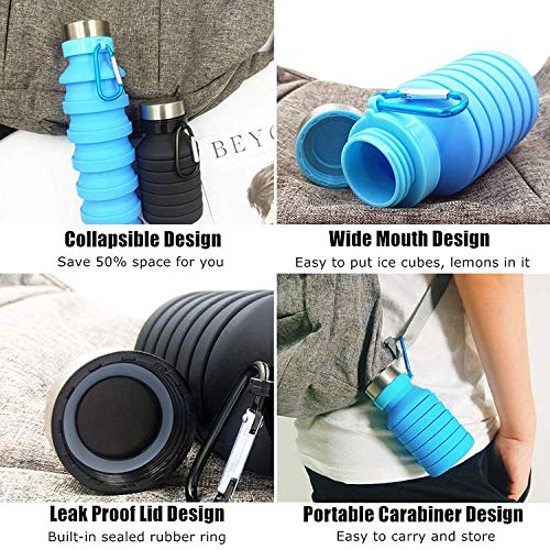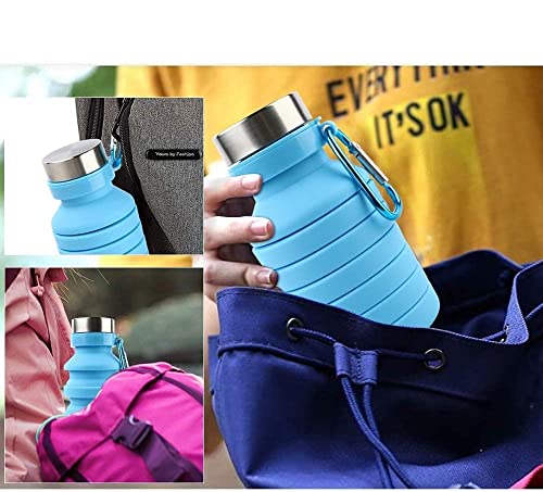 SUITABLE FOR TRAVEL & SPORTS: our foldable silicone water bottle is leakproof and shockproof. The aluminum carabiner is easy to clip on a backpack, small bag or belt and can be carried with you. Ideal for camping, backpacking, weightlifting, running, hiking, exercise, running, yoga, cycling & gym