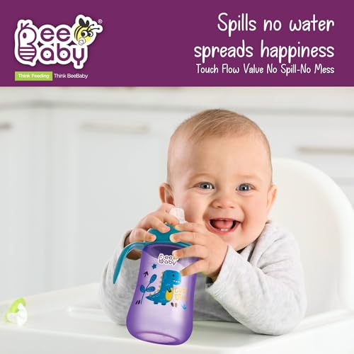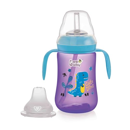 BEEBABY Dino 2 in 1 Spout & Straw Sippy Cup for Baby, Interchangeable Leak Proof, Anti-Spill, Easy to Hold Sipper for Toddlers. 100% BPA Free. (Violet, 240 ML)