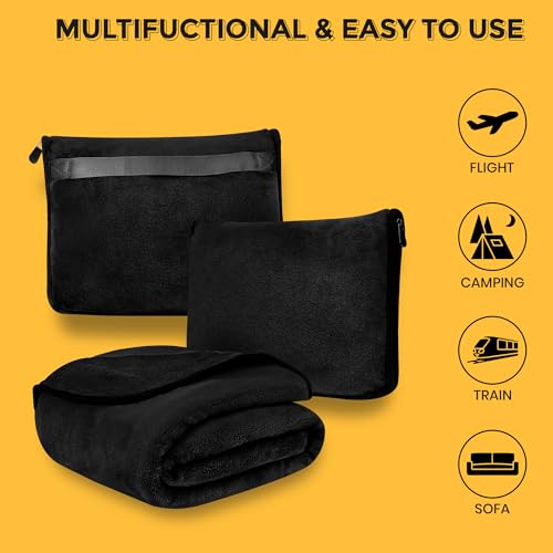 Travel Blanket and Pillow Set: Our premium blanket can be used as a head & neck support pillow. The micro plush carrying case transforms into a cozy pillow when the blanket is not in use, offering dual-purpose convenience. Perfect for camping, road trips, airplanes, and more.