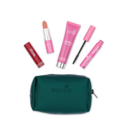 Biotique Natural Makeup Magikisses Lip Balm SPF 20-Berry Crush Biotique Natural Makeup Starryeyes Mascara-Ebony Black Biotique Natural Makeup Starkissed Moist Matte Lipstick-Island Kiss Biotique Natural Makeup Stardew Insta Glow Complexion Care Foundation SPF 20-Vanilla