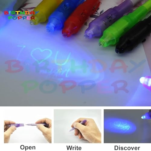 Magical Invisible Ink: Each pen writes in invisible ink that can only be revealed with the built-in UV light on the pen\’s cover, allowing kids to create secret messages and drawings that spark mystery and excitement.