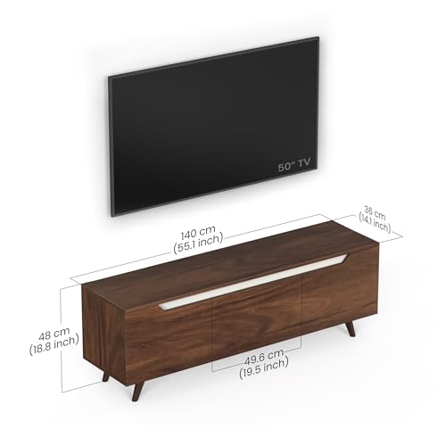 Color: Maple Brown, Floor Standing TV Unit with Three closed Shelves for Storage, TV Size : Upto 55 Inches