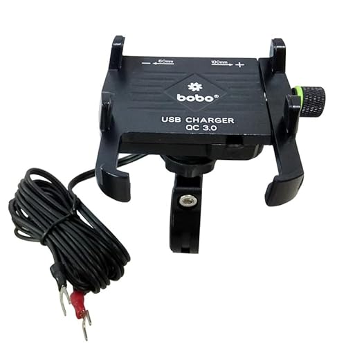BOBO BM5 Aluminium Waterproof Bike/Motorcycle/Scooter Mobile Phone Holder Mount with Fast USB 3.0 Charger, Ideal for Maps and GPS Navigation (Black)
