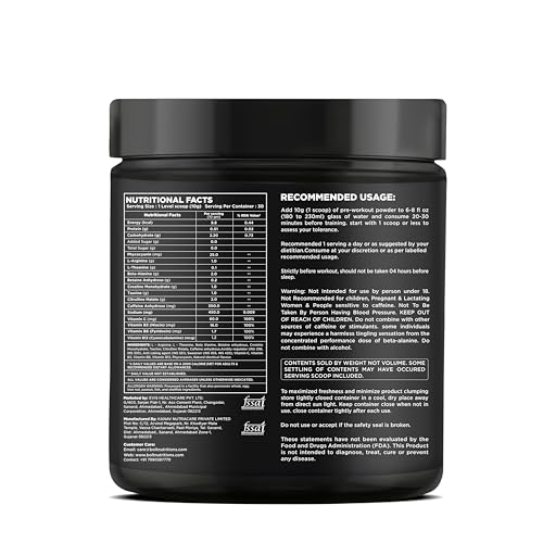 IMPROVES FOCUS: This pre workout supplement contains 300 mg Caffeine & 1gm Arginine for instant and sustained release of energy to keep you focused and active