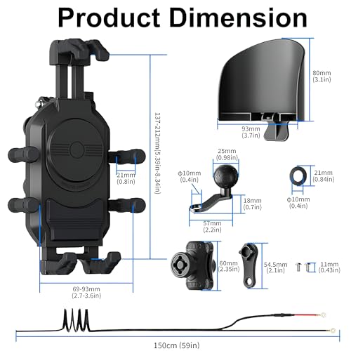 Mobile holder with charger: This innovative mobile holder with charger offers a 15W wireless charging capability, ensuring your phone remains powered throughout your ride. The 360° rotation feature allows for optimal viewing angles.