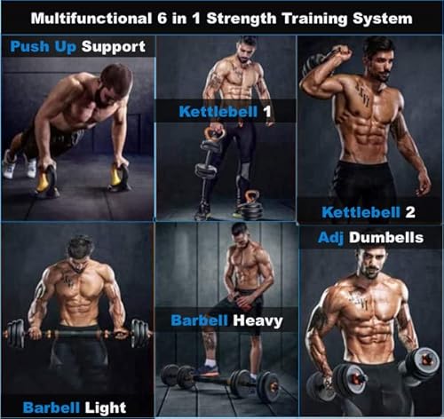 Convertible features: The dumbbell can be converted into a barbell using the connecting bar and the push-up bars can be used to turn the dumbbell into a kettlebell. The weights adjust from 2 to 28 Kgs.