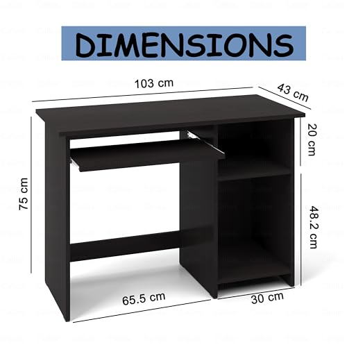 MULTIPURPOSE PC TABLE:With its spacious desktop, you can easily fit your computer, laptop, coffee cups, mini plants, keyboards, etc. The table for office work from home can serve as a working table, computer desk, wooden study table for students, writing table, and more. Great for study, office, children\’s room.