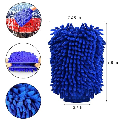 🏍️【Large Size Wash Mitt & Cleaning Towels】Premium scratch free car wash mitt keeps your car clean without scratching it with this super soft microfiber car wash mitt. With waterproof lining, keeps your hands clean and reduce the damage of detergent to skin when washing cars. Ultra soft, non-abrasive microfiber towels can soak up water instantly and will not scratch paints, coats or other soft surfaces.
