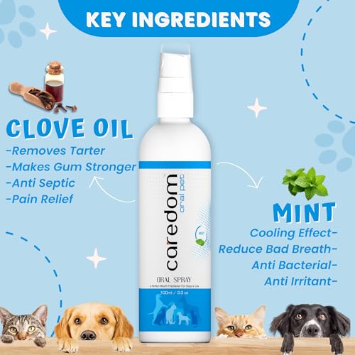 FRESH BREATH FOR PETS: Spray this Dog mouth cleaner & Cat teeth cleaning dental products for instant fresh breath. It is free from chemicals & alcohol.