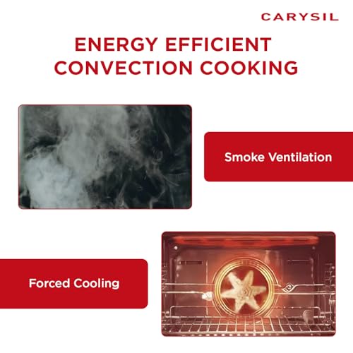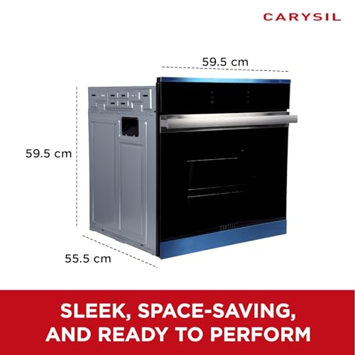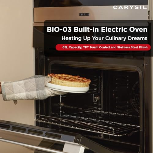 𝟔𝟓𝐋 𝐄𝐋𝐄𝐂𝐓𝐑𝐈𝐂 𝐂𝐎𝐍𝐕𝐄𝐂𝐓𝐈𝐎𝐍 𝐎𝐕𝐄𝐍: With a spacious 65L capacity of the Carysil Built-in Oven, it is perfect for large dishes, family meals, or cooking multiple items at once. The powerful convection system circulates hot air for fast preheating and uniform cooking, ensuring even baking and the perfect temperature every time