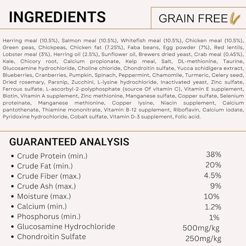 HIGH QUALITY PROTEINS: CHARM Puppy Formula delivers 38% protein from premium sources like Herring, Salmon, Whitefish, Chicken, Green peas, Chickpeas, Faba beans, Egg, Lobster, Crab, and Red lentils, promoting lean muscle growth and overall health.