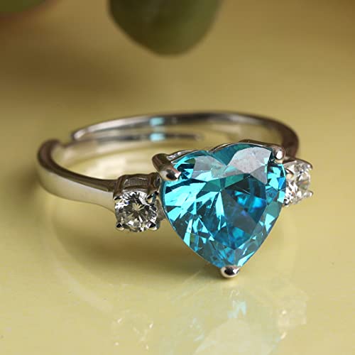 Clara 925 Sterling Silver Sky Blue Heart Ring with Adjustable Band | Rhodium Plated, Swiss Zirconia | Gift for Women & Girls