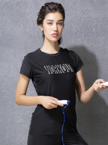 Clovia Women\’s Gym/Sports Text Print Activewear T-Shirt (AT0112P13_Black_XXL)