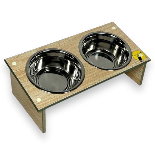 Elevated Design: This pet feeding bowl features an elevated stand made from HDHMR board, providing a 10-degree incline for improved posture and easier access.