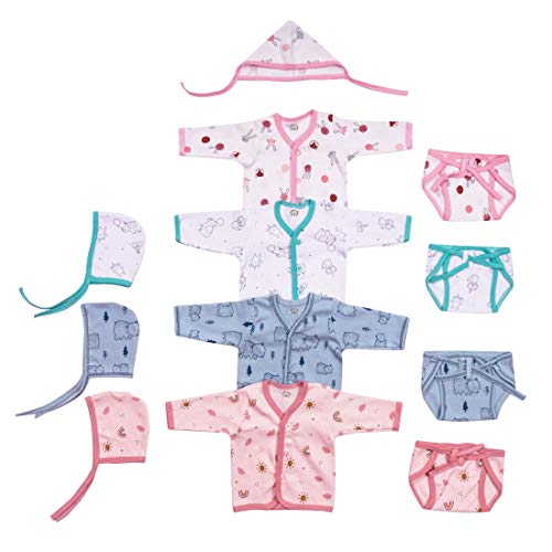 CUTE LANDINGS 0-3 Months Soft Finest New Born Baby Hosiery Cotton Jhabla/T Shirts with Nappies/Langot and Caps/Infant Clothes/Combo/Gift Set/Dress/Essentials/All Products/Regular Wear (Pack of 4)