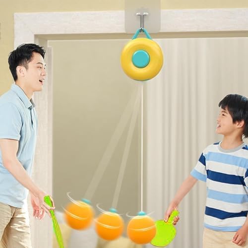 Eitheo Indoor Hanging Table Tennis Set for Kids, Table Tennis Self Training Game Set with 3 Ping Pong Balls & 1 Pair Paddle, Ping Pong Training Set Portable Adjustable Game for Kids - Multicolor