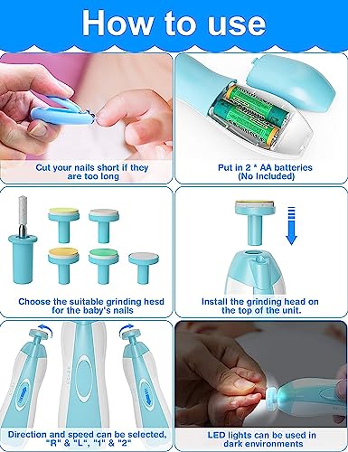The set contains grooming tools for new borns. 1 Pair of Baby Knee Pads, 1 Scissors, 1 Nail Clipper, 1 Nail Trimmer, 1 Twizzer, 1 Hair Brush, 1 Hair Comb, 1 Figner Toothbrush, 1 Ear Pick with light, 1 Measuring Dropping & 1 Non-Measuring Dropping