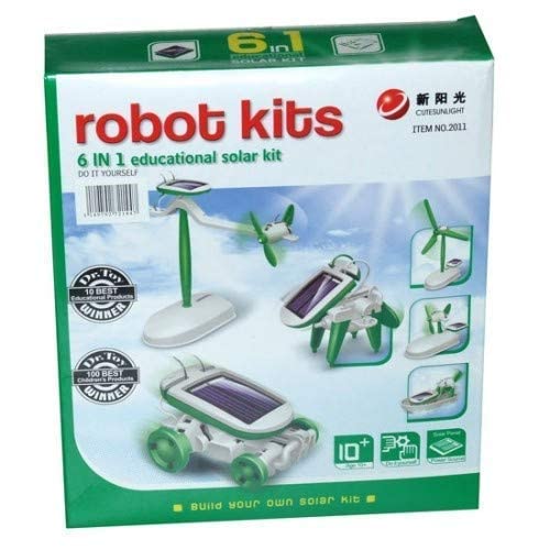 6-in-1 Solar Robot Kit: This solar robot toy could be built into 13 different shapes of robots. It is composed of including moving and connecting parts like gears, plates, tires, and shafts. Kids can easily disassemble them after the building each robot.
