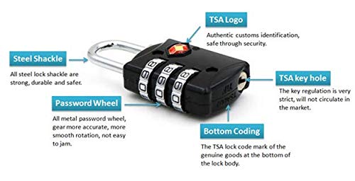 → Locks are constructed with a solid metal , are enhanced by a chrome plated steel shackle, and are TSA Accepted / Travel Sentry Approved. This means TSA airport security can open, inspect, and re-secure your baggage without cutting the lock off, ensuring your belongings stay safe through your journey.