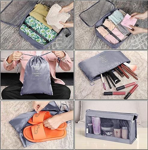 Flyngo 8 Pcs Travel Organizer Pouch Packing Cubes For Clothes Space Savers Bags Cosmetics/Underwear/Socks/Shoes Toiletry Bag Laundry Organiser (Grey) - Nylon