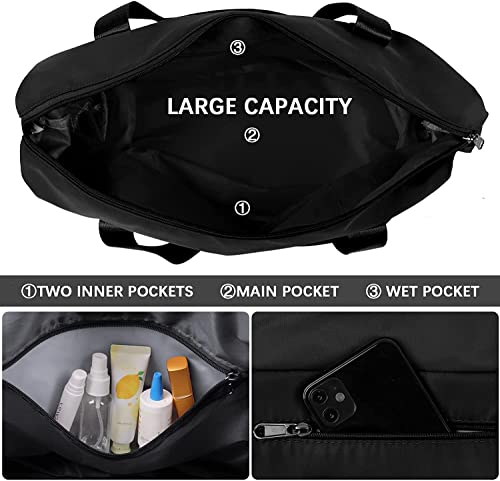 Foldable Travel Duffel Bag, Large Capacity Folding Travel Bag, Travel Lightweight Waterproof Carry Luggage Bag With Shoe Compartment (40 X 23 X 42 Cm) (Black), Nylon