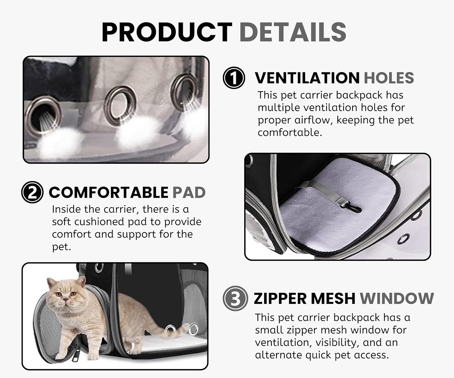 Unique Design – The unique astronaut-ventilated design makes your carrying pet feel safer and comfortable and lets it have a broader vision of the outside.