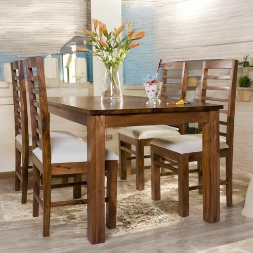 Solid Sheesham Wood Dining Table With 4 chair, Color: Honey Finish Style: Contemporary
