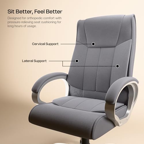 𝗜𝗡𝗧𝗘𝗚𝗥𝗔𝗧𝗘𝗗 𝗦𝗨𝗣𝗣𝗢𝗥𝗧: Equipped with cushioned armrests, a contoured cervical support, and a high-density 4-inch memory foam seat, this ergonomic home office desk chair offers unparalleled support. The ergonomic backrest features a 7-inch curved lumbar design, helping to maintain good posture and reduce back pain, making it perfect for long hours of work.