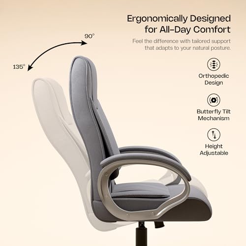𝗣𝗥𝗘𝗠𝗜𝗨𝗠 𝗠𝗔𝗞𝗘 & 𝗠𝗔𝗧𝗘𝗥𝗜𝗔𝗟𝗦: This ergonomic desk chair combines luxurious comfort and feel with durable, breathable leatherette upholstery, offering a sleek, professional look. The high-quality materials ensure long-lasting durability, making it ideal for both home and office use. Perfect as a chair for office desk or a stylish addition to your home workspace.