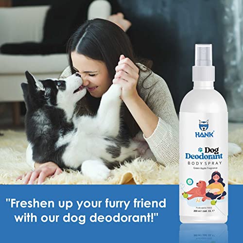 ✅ 𝗟𝗢𝗡𝗚-𝗟𝗔𝗦𝗧𝗜𝗡𝗚 𝗔𝗣𝗣𝗟𝗘 𝗙𝗥𝗔𝗚𝗥𝗔𝗡𝗖𝗘 – HANK Dog Deodorant Spray Perfume provides long-lasting freshness with the refreshing scent of green apples, keeps your furry baby and home smelling fresh and clean.