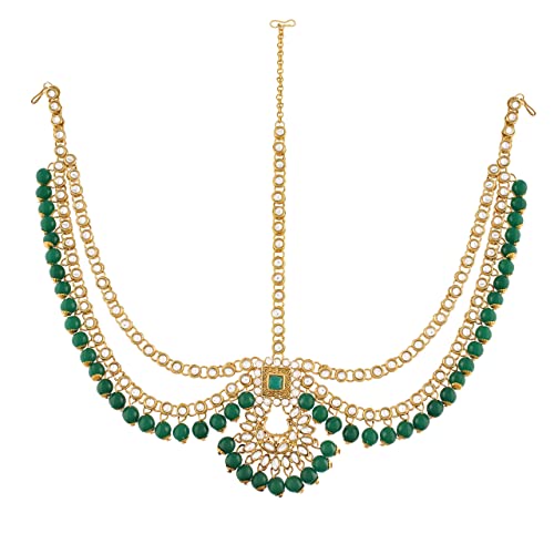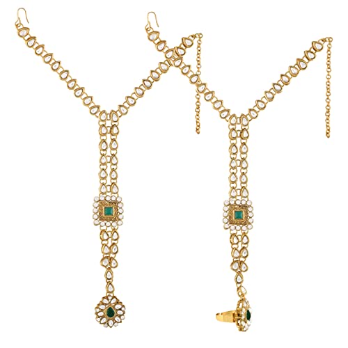 DIMENSIONS: Long Necklace Length – 19.5 inch x Width – 3 inch, Choker Necklace Length – 10 inch x Width – 3 inch, Earring Height – 3 inch x Width – 2 inch, Hath Panja Length – 6 inch x Width – 7 inch, Nose Pin Length – 4.5 cm Chain – 10 inch, Passa Length – 5 inch x Width – 4 inch, Matha Patti Length – 12 inch x Width – 3 inch
