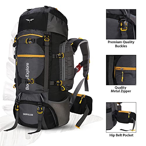HUGE SPACIOUS MULTI UTILITY- Its 80 Liters hiking backpack which has huge compartment size that can fit up to several pairs of clothes with ease with separate pocket for shoes. It also has hip belt zipper pocket for easy access. Multiple straps buckles and pockets for other accessories and water bottle. External clips to hold a yoga mat on the backside available with this rucksack.