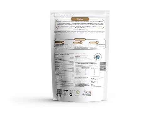 Indian Kitchen Foods Jain Upma - Freeze Dried Gourmet Indian Entree Ready-to-Eat | Instant Vegetarian/Vegan Meal, 220 gm