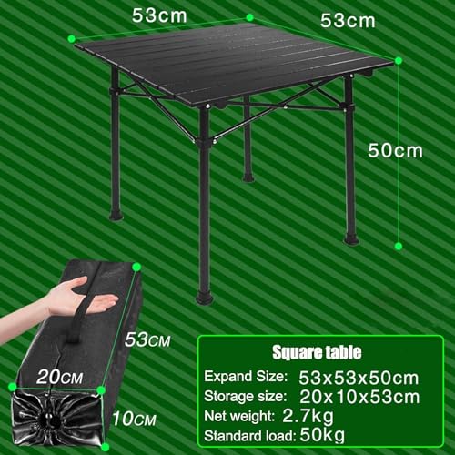 The portable camping table weighs only approx. 2 kg. The aluminium table top and folding feet are easy to fold. Both the top and stand of the folding roll-up table can be assembled in seconds, and take up little storage space, which can be easily stored in the included drawstring bag