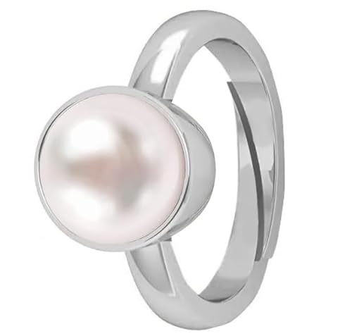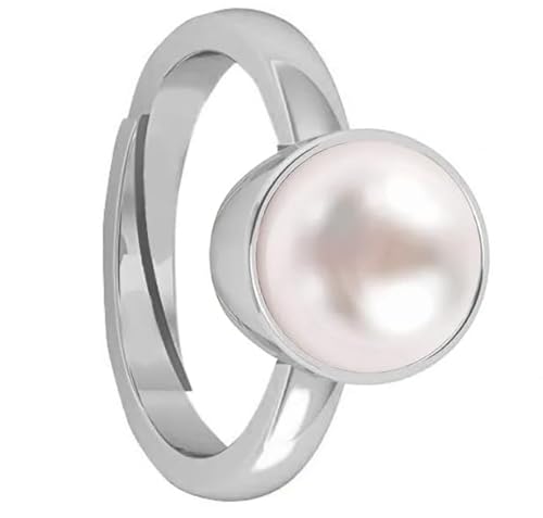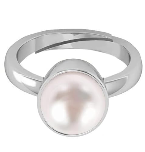 JAGDAMBA GEMS Lab - Certified Pearl 9.00 Carat Natural Pearl Gemstone Original Certified moti Adjustable panchhdhaatu/Ashtadhatu Silver Ring for Men and Women
